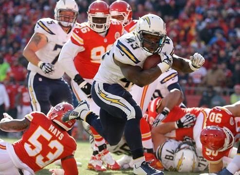 Printer-friendly version Photo: San Diego Chargers running back Brendan Oliver runs for a touchdown in the teams loss to the Kansas City Chiefs. Courtesy of San Diego Chargers Facebook.