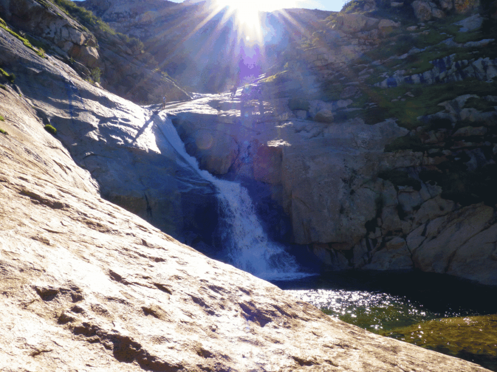 Public comments due by March 25 By Miriam Raftery February 25, 2015 (San Diego’s East County)–Three Sisters Falls is one of the most beautiful natural attractions in East County – a trio of waterfalls and natural swimming holes in a wilderness area within Cleveland National Forest. But the falls are also among the most difficult scenic sites to access. Now Cleveland National Forest’s Palomar Ranger District is planning a major recreation management project at Three Sisters Falls, located near Boulder Creek Road between Santa Ysabel and Descanso. The proposed action is to adopt and/or construct a Level 2 System Trail to Three Sisters Falls, to decommission and restore existing user-created trails, and to clear and construct a primitive dirt or gravel parking area off of Boulder Creek Road, also adding a kiosk with educational materials. The purpose of this project is to address concerns related to public health and safety, resource impacts from unmanaged recreation use, and compromised access along Boulder Creek Road for area residents and emergency vehicles during high-use periods at Three Sisters Falls, says district ranger Joan Friedlander. The user-created trails cross steep, rugged terrain and riparian areas. Last year, an average of 100 to 200 people a day used the trails to Three Sisters Falls, exceeding 400 people a day at peak periods. This has resulted in public health and safety issues including heat illness, traumatic injuries resulting from hikers falling as they attempt to reach the falls, and lost hikers. (photo, right: user-created trail requires rappeling with rope down a rocky face) There have also been problems of widespread soil erosion, watershed impacts, plant and wildlife impacts, and impediments to traffic flow on Boulder Creek Road including impeding access to emergency vehicles and area residents. While the U.S. Forest Service believes the proposed changes will improve safety , access and environmental protections, one key issue is that improving access could also increase the number of visitors to Three Sisters Falls. That could necessitate a permit system to restrict dailyvisitors, as was implemented after changes were made to trails leading to Cedar Creek Falls. A letter sent February 25, 2015 by Cleveland National Forest initiates the 30-day scoping period for the Three Sisters Falls Recreation Management Project Environmental Assessment (EA). A project description and map are available online at: http://www.fs.usda.gov/project/?project=46285 . You can submit electronic comments at comments-cleveland@fs.fed.us with the subject line Three Sisters Falls Recreation Management. Comments may also be mailed or hand delivered during business hours (M-F 8:00 am to 4:30 pm) to: Joan Friedlander, Attn: Bjorn Fredrickson, Palomar Range District, 1634 Black Canyon Road, Ramona, CA 92065. Finally, comments may be submitted by FAX to (760) 788-6130. Names of commenters will be part of the public record subject to the Freedom of Information Act. Any comments received by March 25, 2015 will be included in the project record.