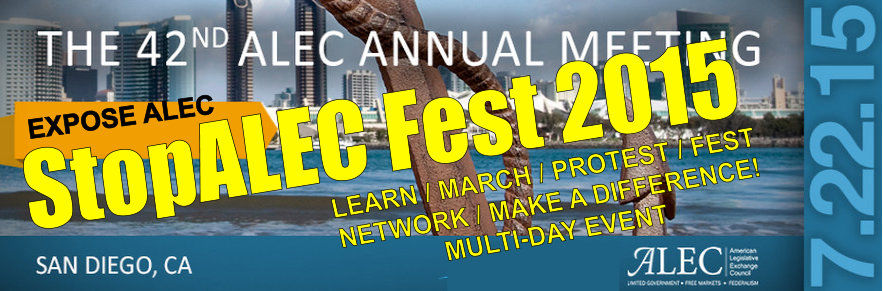 East County News Service July 19, 2015 (San Diego) – The American Legislative Exchange Council (ALEC) will host its annual convention on Wednesday, July 22 at the Grand Hyatt Hotel in San Diego. The organization is funded by corporations and pushes state legislators to introduce “model” legislation that it calls “pro-business.” Speakers include Republican presidential candidates Ted Cruz, Scott Walker and Mike Huckabee. The conference also will include other state and national legislators from across the nation. But progressive organizations are mobilizing thousands of people for a march, rallies and protests against ALEC, which critics say pushes forward anti-worker, anti-environmental measures drafted behind closed doors. Local State Senator Joel Anderson (R-Alpine) chairs ALEC’s California chapter. Among the groups planning to protest ALEC is the Courage Campaign, a statewide organization. In an e-mail to its supporters, Courage Campaign writes, “Legislators from across the country will arrive to take their marching orders from the Koch Brothers, giant corporations, and right-wing millionaires and billionaires. ALEC pushes model legislative bills designed to: restrict our ability to vote, increase gun violence, destroy our environment, end our right to organize, and give billions of dollars away in corporate welfare. “They want to destroy marriage equality in America and halt all progress for LGTB rights,” states Courage Campaign, which is holding a rally July 22nd at 3 p.m. in Embarcadero Park North, across the street from the Grand Hyatt Hotel where ALEC is holding its conference. (Those wishing to participate can RSVP here.) A march will be held at 3 p.m., arriving at the convention site at 4 p.m. Locally, Citizens Oversight, a government watchdog group founded in El Cajon, is inviting citizens to join in a “StopAlecFest” at 5 p.m. outside the Gran Hyatt at Kettner and Harbor Drive. https://www.facebook.com/events/1113726135320791 Ray Lutz, founder of Citizens Oversight, states, “ALEC is a pay-to-play operation where corporations buy a seat and a vote on ‘task forces’ to advance their legislative wish lists and can get a tax break for donations, effectively passing these lobbying costs on to taxpayers. Along with legislators, corporations have membership in ALEC. Corporations sit on ALEC task forces and vote with legislators to approve “model” bills.” ALEC claims to have over 1,000 bills introduced by legislators each year, with one in five enacted into law, Citizens Oversight states. “These bills are nothing more than a way for the rich and powerful to squeeze every last dime they can out of families like ours all across the nation,” Lutz says, adding, “We do things differently here in California and are a model for the nation, and it’s time we stand up to ALEC to let them know they are not welcome here.” Another San Diego organization mobilizing against ALEC is SD 350, which is urging its climate action supporters to meetup from 3:45 to 4:10 p.m. outside the Kansas City BBQ to protest ALEC’s anti-climate change policies funded by “fossil fuel giant corporate members like ExxonMobil and Peabody Energy.” For details, click here. In addition, unions are holding a rally at the Civic Center at 3 p.m. on the 22nd and on the 23rd at 5 p.m., Common Cause will sponsor a panel discussion at the Hilton Airport hotel. ALEC has responded to the growing criticism of its actions by insisting that legislators are elected and ultimately responsible to voters. The organization cites the First Amendment and claims its freedom to meet with lawmakers is a protected right. “Legislators and all Americans have the right to associate and exchange ideas in any forum they choose. This right is protected by the Constitution, and no one should be intimidated by those who want to silence speech,” ALEC states on its website.
