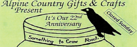 September 29, 2015 (Alpine)—Alpine Country Gifts & Crafts is hosting its 22nd annual “Something to Crow About” Craft and Harvest Festival from Thursday October 8 through Saturday October 10. The event will be held at Alpine Woman’s Club, 2156 Alpine Blvd., Alpine, and features crafts and homemade items, including “Owl Nesting Boxes.” The hours will be 4 – 7 p.m. (Oct. 8), 9 a.m. – 7 p.m. (Oct. 9), and 9 a.m. – 5 p.m. (Oct. 10). Visa and MasterCard are accepted. For more information call 619-445-4212 or 619-478-2742 or visit online at www.alpinecountrycrafts.com.