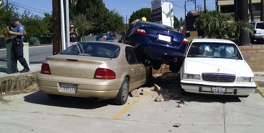 Printer-friendly version By Liz Alper October 27, 2015 (El Cajon) – A blue sedan crashed into a parked car on East Main Street Tuesday morning, then backed up and crashed