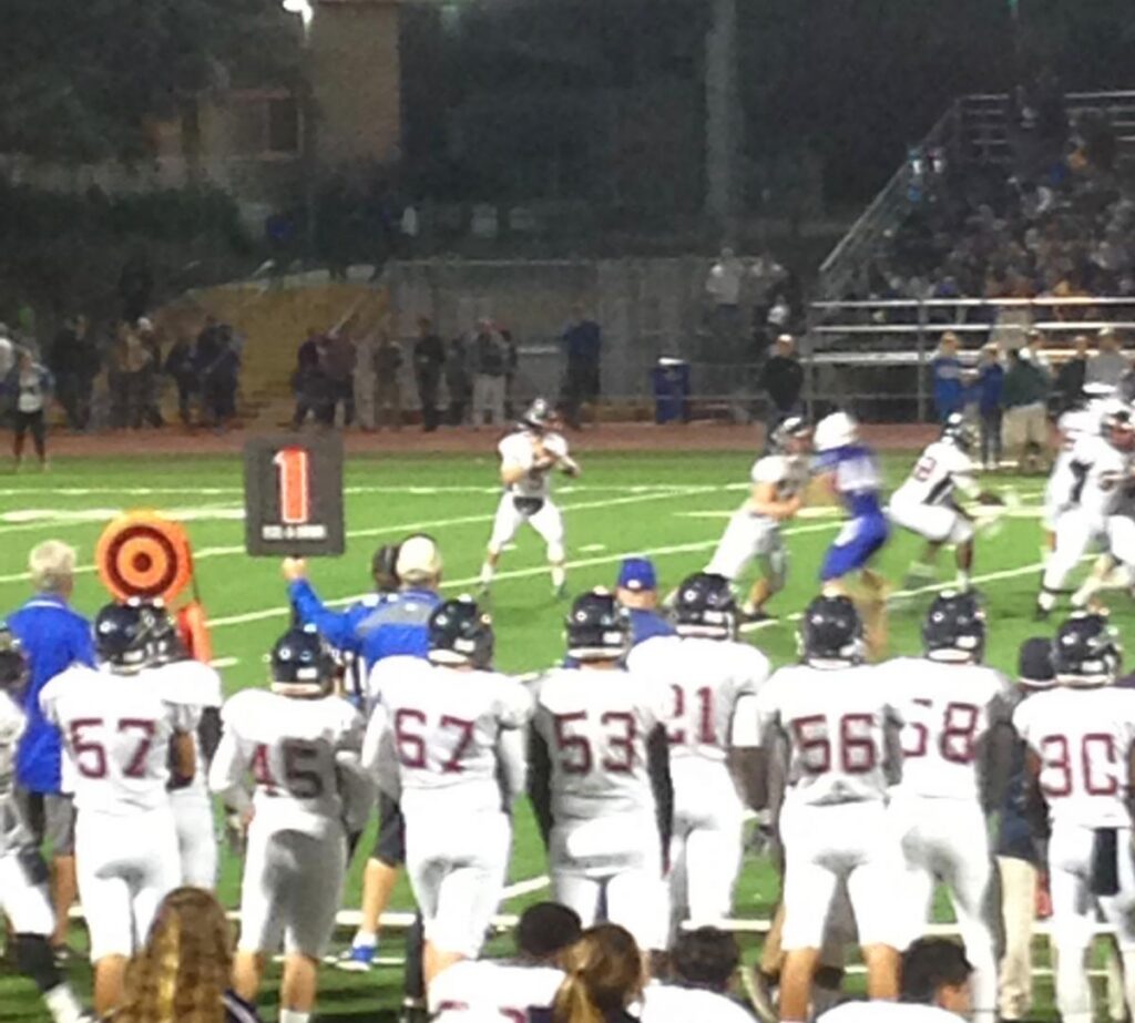 By Liz Alper November 20, 2015 (El Cajon) – In round two of the CIF playoffs, the Steele Canyon High School Cougars traveled to Grossmont to take on the Grossmont High School Foothillers in an exciting Division I matchup. The Foothillers wasted no time getting on the board. In the first quarter, quarterback Hunter Gaines fired it over the middle to wide out Domonique Guevara for a 7-0 Foothillers lead. Grossmont kept it rolling in the second quarter when Gaines found Guevara again, wide open this time, for the score. 14-0 Foothillers. This game was all Grossmont. Gaines aired it to receiver Khaleed Davis for the Foothillers’ third touchdown of the night. 21-0 Grossmont. After a spectacular first down catch at the five yard line by Davis, running back Jake Harr finished the job for the fourth Foothillers touchdown. It was 28-0 Grossmont at the half. In the second half, the Cougars managed to avoid being shut out with a touchdown pass by quarterback Thomas Fishburne in the third to make the score 28-7 Grossmont, but the second half, just like the first half, was all Grossmont. Or was it? Gaines made some nice spin moves on his touchdown run to make it 35-7 Foothillers, but Steele Canyon started clicking. Running back Pierre Alexander ran it in for six to cut the Grossmont lead to 35-14 with three minutes left in the third. After a great interception by linebacker Jake Citrinitti, he did the same thing to cut the Foothillers’ lead to two scores at 35-20. After an explosive first down catch by Steele Canyon wide out Sean Todd, running back Malcolm Anders completed the drive with a touchdown. A blocked field goal made the score 35-26 Grossmont, but the Cougars still were within one. The Cougars pulled to within three midway through the fourth quarter, and then with just over a minute left in the game, all of Steele Canyon’s first half mistakes seemed to disappear into the night sky. Linebacker Mikel Oliver blocked a punt and returned for a touchdown, making the score 39-35 Cougars. That sealed the deal for the Cougars. An amazing second half turnaround gave them the win, and a lackluster second half performance by Grossmont handed the Foothillers elimination. Steele Canyon moves on to the semifinals next Friday.