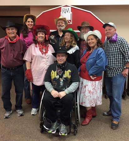 By Kathy Carpenter Assoiciate and Youth Reviewer www.sdtheatrereviews.com November 24, 2015 (El Cajon) – “The Circle players is a theatre outreach under the Neighbor to Neighbor program of the First Presbyterian Church of El Cajon. The goal of The Circle Players is to provide a resource to those in our community who want to share their talent in acting and other performing arts, as well as technical and production aspects of the theatre. The Circle Players is a hospitable and welcoming group who provide for twenty dollars, not only a murder mystery play, and a meal, but an entire theme filled event–an interactive good time for all. I have been out for two events; first, the Murder Mystery Cafe, last Spring. I loved that one. I’ve been to several murder mysteries of this sort and this was by far my favorite. The suspects actually came and sat down at your table for you to question, and there was an actual clue for you to be able to solve the crime. This past weekend The Players presented Wrangle at Red Mountain Ranch by Nancy Bond, directed by Joel Gossett. This was a real hootenanny. For this show you were invited to wear your western duds.You sat at long picnic tables with red checked tablecloths, bowls of chips and salsa, pitchers of .lemonade and water. Little pails held the silverware, ballots, and a cowboy themed word scramble to add to the fun. We were serenaded while we waited by a five piece band, Howard “Boss Man” Bivens, Cindy Graham “Crackers”, Eric “Sven’ Lingren, Dennis “Rusty Fingers” Mckinley, and “Hang on Heidi Mckinley. They set the mood with old country tunes and invited people to sing-a-long while we were being served our hearty meal.of chili, pork, cole slaw, cornbread, and a Hawaiian roll, followed by a delicious dessert. The play itself was more of a take your best guess, after watching quite a bit of acting for this type of play, even a skit within the play. A few people from the audience were invited to participate in the skit. Your chance to be a star. While the entire audience was invited to make horse clopping sounds. Involving everyone added to the total dude ranch theme of the night. The cast consisted of Hanna Feinstein, Justin Briggs, Kathe Perdue, Jack Vernon, Frank Ferrone, Maxine Levaren, Sharonfaith Horton, Steve Perdun, and Joel Gosset. If it’s fun ye be wantin’ The Circle Players next Mystery Dinner Theatre will be “MURD-ARRR!!!” Pirates of the Salty Dog – April 29 & 30, 2015 at 7:00pm or May 1,, 2015 at 2:00. If you want to act or help they can be reached at thecircleplayers@gmail.com or call (619) 588-5348. In February they will have a staged reading of “The Importance of Being Ernest” by Oscar Wilde. In October they will do “The Trial of Dr. Martin Luther.” Experience The Circle players for yourself sometime in the near future.