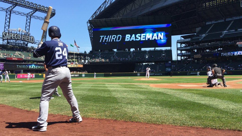 Printer-friendly version     By Liz Alper Photo courtesy @Padres on Twitter   May 31, 2016 (Seattle) – A Tuesday matinee?  It’s more likely than you think!  James Shields got the start today against Hisashi Iwakuma for Seattle. The Mariners got the ball rolling–literally–in the first with Kyle Seager’s line drive single that scored Robinson Cano to take a 1-0 lead.     In the second, Shields walked Cano with the bases loaded.  Luis Sardinas was walked in and the Mariners led 2-0.  Nelson Cruz singled, scoring two and the Mariners went up 4-0.  As if that weren’t bad enough, Seager launched a three-run homer and the Mariners’ lead was extended to a touchdown, 7-0.   In the third, the Mariners extended their lead to double digits with former Padre Seth Smith’s three-run homer to make the score 10-0.   In the fourth, Seattle got another homer thanks to Franklin Gutierrez and the Mariners took a 12-0 lead. Smith added another solo shot in the fifth and the Mariners went up 13-0.  That was Smith’s sixth home run of the season.  Why not more home runs?  Adam Lind hit his sixth of the season, a three-run bomb to center to give the Mariners a 16-0 lead.   The Padres DID get on the board in the sixth with Travis Jankowski’s two-run homer and the score was 16-2, so this game wasn’t completely hopeless.  Matt Kemp homered also and the score was 16-3.   Hector Sanchez homered in the seventh to cut the Mariners’ lead to 16-4.  The slaughter finally ended and the Mariners took game two.   The Mariners are coming to Petco for the second half of the home-and-home.  Game three is tomorrow night at 7:10.  King Felix Hernandez will start for the Mariners against Christian Friedrich.  Printer-friendly version