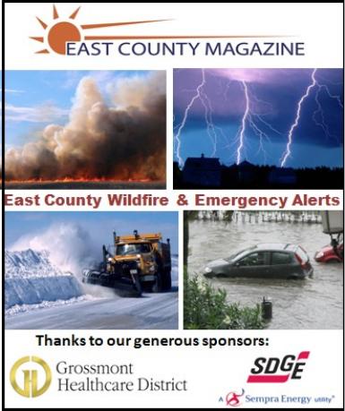 By Miriam Raftery June 21, 2016 (San Diego’s East County) – Cal Fire has issued an update at 11:32 a.m. advising the Border Fire is holding at 7500 acres, but still only 5% contained. Evacuation orders remain in place for Forest Gate, Star Ranch, Cowboy Ranch, Dog Patch and Canyon City. The Red Cross has an evacuation shelter set up at Los Coches Creek Middle School at 9669 Dunbar Lane in El Cajon. Slightly cooler weather and high clouds are aiding firefighters continuing to battle the blaze that began Sunday at 11:04 a.m. Residents in the area late this morning report the winds are blowing east to northeast. For those animals that were left behind by their owners but are in a safe area of the evacuation area, the Department of Animal Services is providing food and water to those animals. If you have animals in the evacuation area that need food and water, please call our 24 hour emergency dispatch unit at 619.236.2341. Per SDGE, power is out to 31 customers in Potrero, Dulzura and Campo, as well as 42 in Lake Morena. Power restoration is predicted for tomorrow, June 22 at noon. Watch for more details to be posted here soon. Sign up for free East County Wlidfire and Emergency Alerts via e-mail at the top right side of our homepage and also receive a free weekly copy of our newsletter. You can also follow EastCountyAlert on Twitter for brief text alerts on your mobile phone. We recommend all of the above since some communications means may fail during a major regional emergency. You can also watch for updates at www.EastCountyMagazine.org.