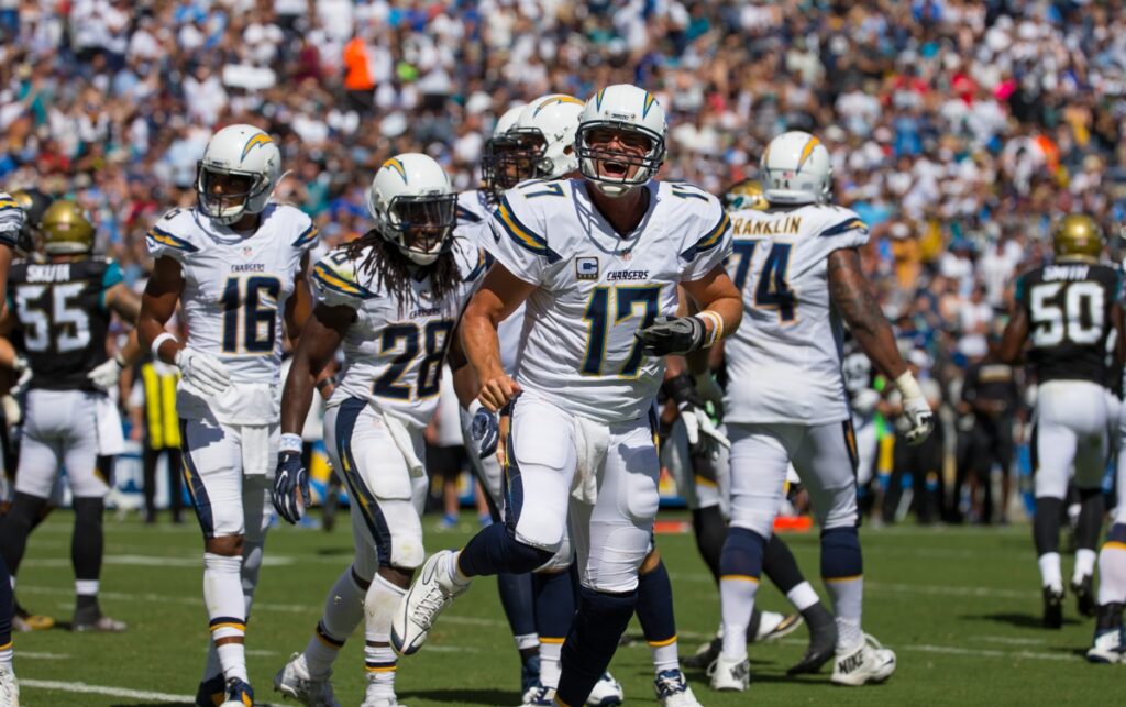 By Liz Alper Photos courtesy Joel Price, San Diego Chargers September 19, 2016 (San Diego) – After a shocking loss last week in Kansas City, the Chargers came back home to take on the Jacksonville Jaguars. This week, though, everything seemed to be clicking for the Chargers from the first drive of the game. After big runs from Melvin Gordon and Danny Woodhead, Gordon finished the job by barreling through to the end zone. 7-0 Chargers after the extra point. Even though the Chargers lost Woodhead to an injury late in the first quarter, that didn’t slow down their offense. In the second, Philip Rivers threw a short toss to Travis Benjamin and it was 14-0 Chargers with the PAT. With 10 minutes left in the half, Rivers went to his classic go-to man, Antonio Gates, for the Bolts’ third touchdown of the half and the 105th touchdown reception of Gates’ career. The PAT went through and it was 21-0 Chargers at the half. In the third quarter, the Bolts didn’t stop. Rivers looped it to Tyrell Williams who made a few moves, broke some tackles and got the 44-yard touchdown. 28-0 Chargers after the PAT. Late in the third, Rivers aired it long for a 45-yard pass to Benjamin and the Chargers scored ANOTHER Bolts touchdown, their fourth of the day. 35-0 Chargers with the PAT. The Jags got on the board in the fourth with a short pass from Blake Bortles to Marcedes Lewis and the Chargers still led 35-7. With seven minutes left in the game, Josh Lambo added three points with a field goal and the Chargers led 38-7. At the end of the fourth, the Jags added one more to make the final score 38-14 Chargers. The Bolts go to 1-1 on the season. They’ll travel to Indianapolis to take on the Colts on Sunday. In other news, the Chargers placed Woodhead (knee) on “Reserve-Injured,” the team announced Monday. Woodhead, who helped set up the team’s first touchdown of the game with a 23-yard run to Jacksonville’s three, scored a touchdown in the Chargers’ Sept. 11 season opener in Kansas City. This is the second time Woodhead has been placed on Reserve-Injured. In 2014, he was placed on the IR list after suffering a broken ankle during the Chargers’ Week 3 game in Buffalo. Woodhead will be replaced on the active roster by former Indianapolis Colts wide receiver Griff Whalen. A former undrafted free agent out of Stanford, Whalen spent four seasons with the Colts. He spent his rookie season in 2012 on injured-reserve but came back to play in 33 games with three starts during the 2013-15 campaigns. His career totals include 45 catches for 487 yards (10.8 avg.) with three touchdowns. Whalen also has experience as a kick and punt returner. He has 25 career kickoff returns for 645 yards (25.8 avg.) with a long of 50 and 46 career punt returns for 376 yards (8.2 avg.) with a long of 51. Whalen has some postseason experience as well. He played in two playoff games for the Colts in 2013, catching seven passes for 93 yards. Whalen is a native of Sylvania, Ohio. He will wear No. 83 for the Chargers.