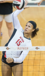 Aztec volleyball player sets school hitting percentage record Source: goaztecs.com pres release Photo courtesy goaztecs.com September 19, 2016 (San Diego) – San Diego State middle blocker Deja Harris has earned Mountain West Women’s Volleyball Offensive Player of the Week honors for matches played through Sunday, September 18, 2016. It is the first Conference weekly award of Harris’ career. A sophomore from Las Vegas, Nev. (Calvary Chapel HS), she led San Diego State to a 3-0 week in the SDSU/USD California Mixer. Along the way she set an SDSU school record with a.909 hitting percentage in the victory over Cal State Fullerton on Saturday. Harris averaged 3.11 kills with a .545 attack percentage over nine sets this past weekend. The kill average was her best over a weekend this season. Harris posted seven kills and a .357 attack percentage in a 3-0 win against UC Santa Barbara. She also had five block assists. In the 3-0 victory against Long Beach State, she tallied 11 kills and one dig with a .474 attack percentage. In addition to her school-record hitting mark vs. Cal State Fullerton, she also finished 10 kills and three block assists in the 3-0 win versus the Titans. After her performance over the weekend, Harris improved her season hitting percentage to .431, a mark which leads the Mountain West entering this week’s play. San Diego State continues its current five-match home stand when it hosts No.19 University of San Diego for a match on Tuesday, Sept. 20, at 6:00 p.m. on Aztec Court.