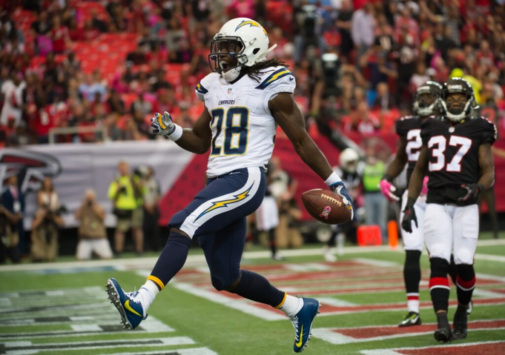 For more sports coverage, visit ECM’s Sports section. By Liz Alper Photos courtesy Joel Price and Jamaal LaFrance October 25, 2016 (Atlanta) – The Bolts traveled to Atlanta to take on the Falcons on Sunday. The Chargers started the scoring right away in the first quarter with Melvin Gordon’s two yard touchdown run that put the Bolts up 7-0 after the PAT. The Falcons got on the board with Matt Bryant’s 42-yard field goal attempt and the score was 7-3. After an interception, the Falcons couldn’t do anything with it except another field goal that made the score 7-6 Chargers. In the second, Josh Lambo gave the Bolts some breathing room with a field goal that gave them a 10-6 lead. But the Falcons took everything away. After a long completion to Julio Jones, Matt Ryan fired a bullet into the endzone to Jacob Tamme for a 17-yard touchdown pass. Atlanta took a 13-10 lead. They scored again as halfback Tevin Coleman got a big burst of speed and ran into the endzone after a good drive down the field. 20-10 Falcons. Things just kept getting worse. Deep in their own zone, Philip Rivers dropped back to pass and coughed up the ball. It was recovered by Adrian Clayborne who took it in for the score. 27-10 Falcons. The Chargers inched closer with Gordon’s second rushing touchdown that made the game a 10-point game, 27-17, at the half. In the second half, the Chargers marched downfield, but couldn’t put it in the endzone, so Lambo came on again and kicked the field goal to make it a one-score game in the third, 27-20. But in the fourth, the Falcons pulled further away with a Bryant field goal that got their lead back up to 10 at 30-20. The Chargers narrowed the deficit to three when Rivers threw to Gordon at the goal line wide open for the score. 30-27 Falcons. Even though the Chargers failed at getting the game-winning touchdown with seconds left in the fourth, they did force overtime with Lambo’s game-tying kick. In overtime, after an impressive stand by the defense, Lambo made winning look easy with a field goal to give the Chargers a 33-30 win after coming back from 17 points down. On Halloween Eve, the Chargers head to Denver for a rematch against the Broncos. Kickoff is at 1:05 p.m. Transaction news: Caraun Reid on injured reserve