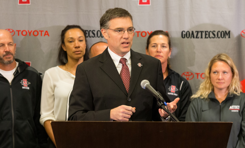 Source: goaztecs.com Photo courtesy goaztecs.com October 25, 2016 (San Diego) – John David Wicker has been named San Diego State University’s new Director of Intercollegiate Athletics. The announcement was made today by SDSU President Elliot Hirshman. “It feels great to be back on the Mesa,” Wicker said. “I loved my four years here with the coaches, the staff and all the student athletes. I’m thrilled with this opportunity and I am looking forward to helping SDSU Athletics move to next level of success.” Wicker was SDSU’s Deputy Athletic Director from 2011 until leaving for Georgia Tech in July 2015. During his first term at SDSU he was responsible for the day-to-day operations of the Aztecs athletics department, overseeing business operations, human resources, events and facilities, capital projects, strength and conditioning, academics, video and sport oversight for football, rowing, and men’s and women’s basketball. “When we began this search, we envisioned a person who cares about our student athletes, whose integrity is paramount and whose competitive fire inspires greatness. In short, someone who embodies our ideal of `winning it right.’ John David Wicker is that person,” said President Elliot Hirshman. Prior to his time at SDSU, he was the Associate Athletic Director for Event and Facility Operations at Washington State from 2001-2011. While at Washington State, he was responsible for event planning and game day responsibilities for all home athletic events, conference tournaments and NCAA championships, day-to-day oversight and operations of all athletic facilities, and the liaison for the athletic department on capital projects. From 1999 to 2001 Wicker served as Director of Event and Facility Operations at Southern Miss. At USM, he oversaw regular season and championship event operations, coordinated day-to-day maintenance of facilities, and was the liaison to the university on all capital projects. He also oversaw the design and initial construction of USM’s $11 million Athletic Center, which houses administrative and coaching offices, football locker room, weight room and training area. Wicker also spent three years at Georgia, from (1996-1999), where he also worked for the Atlanta Committee for the Olympic Games in preparation for the 1996 Summer Olympics as the venue logistics manager for Sanford Stadium, home to the medal rounds for men’s and women’s soccer. Wicker takes over an athletic department that has enjoyed great success in recent years. The football team, which is 6-1 this season, has been to six straight bowl games. Men’s basketball has been to the post season seven straight years. Teams, from water polo to men’s and women’s golf, to baseball and softball, have combined for 32 Mountain West championships since the beginning of the 2012-1013 year. “One of our top priorities will be to generate more excitement about Aztec Athletics on campus, in the community, and with our close to 300,000 alumni across the nation,” Wicker said. “People around the country know what an incredible atmosphere Viejas Arena is. And that is in no small part because of the fans. There is no reason why we can’t have a similar atmosphere at our football games, at Tony Gwynn Stadium for baseball, on the Sports Deck for soccer games and more.” Wicker graduated from Mississippi State in 1992 with a bachelor’s degree in professional accountancy. He received his master’s degree in education with an emphasis in sports management from Georgia in 1997. He is expected to begin work at SDSU on Nov. 28. Terms of his contract are being finalized and are not yet available. Wicker and his wife Rachel have a daughter, Scarlett Anne. Aztec Men’s Basketball Head Coach Steve Fisher on the hiring of John David Wicker: “This is a very good hire. We’re bringing a guy home who knows the landscape, knows the people, worked well with us when he was here and he gets things done. I anticipate the same thing happening now.” Aztec Softball Head Coach Kathy Van Wyk on the search for SDSU’s new athletic director: “I can honestly say he wasn’t the front runner all along. We had every intention of going in and finding the right person. As you go through the process, you’re reading a lot of paperwork and you spend a limited amount of time with people and try to get to know them as best you could. When you’re talking about morals and ethics and all of those things, we had the opportunity to work with JD before. We knew how he worked. That obviously factors into it and it was a no-brainer when it came down to it.” “We asked all of the candidates what they saw as most important factors for us moving forward and the big piece is looking at the football stadium and trying to find a way into the Power 5. We all know that that’s our next step so how are we going to do that? Our new leader is going to be key in us making those moves.”
