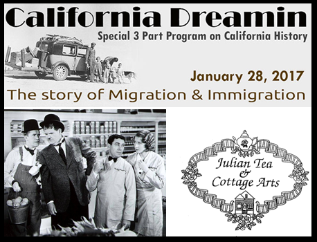 East County News Service January 18, 2017 (Borrego Springs) – The Anza Borrego Desert Natural History Association will present a three-part program titled “California Dreamin’” on the story of migration and immigration. All three parts will be presented on Saturday, January 28th and will encompass the history of the early Californians, Western women, and the impacts of immigration on Native Americans. For reservations and details, visit the Anza Borrego Desert Natural History Society website at www.ABDNHA.org.