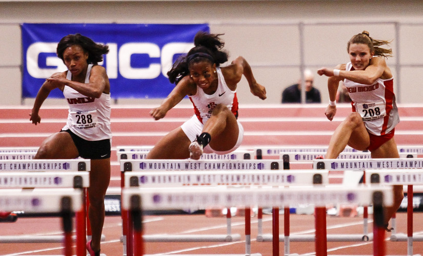 Auzenne breaks her own 60 hurdles record; ties record in the 60-meter dash Source: goaztecs.com Photo courtesy goaztecs.com January 21, 2017 (Alberquerque) – Micha Auzenne broke her own San Diego State record in the 60-meter hurdles and tied her mark in the 60-meter dash to pace the San Diego State track and field team on the final day of the Cherry & Silver Invitational Saturday in Albuquerque, N.M. Auzenne first broke her record in the 60 hurdles, taking second in the finals with a time of 8.11 seconds. The time eclipsed her previous best of 8.18, set last year at the MW Championships and earlier in the day in the semifinals. Later in the open 60, Auzenne tied her school record with a clocking of 7.32 in the finals to win the event. Her previous 7.32 also came at the MW Championships last year. Auzenne also won the semifinals of the 60 in 7.38. Ashley Henderson, meanwhile, came in second in the 200 in 7.40 after running a 7.46 in a semifinal heat. Andrenette Knight also clocked a pair of all-time top-10 times in Aztec history in the 400 and the 60 hurdles. Her time of 55.69 in the 400 was the 10th fastest in SDSU indoor history, while her 8.51 in the semifinals of the 60 hurdles tied for the 10th fastest. Tyra Lea finished ahead of Knight in the 400, taking fifth in 55.64, just behind her collegiate-best time of 55.50. Other top-10 showings for San Diego State came from Simone Glenn (eighth, 7.62) and Rochene Smith (ninth, 7.62) in the 60 semifinals, Cindy Flores (eighth, 2:19.12) in the 800 and Je’Neal Ainsworth (ninth, 39 feet, 1 inch (11.91m)) in the triple jump. The Aztecs are back in action next weekend at the two-day UW Invitational in Seattle, beginning Friday. Cherry & Silver Invitational Albuquerque Convention Center – Albuquerque, N.M. Day 2 of 2 – January 21, 2017 Team Results No team scores Individual Results (winner and SDSU only) 60 Meters (semifinals) (out of 16 entrants) 1. Micha Auzenne (SDSU) – 7.38q 2. Ashley Henderson (SDSU) – 7.46q 8. Simone Glenn (SDSU) – 7.62q 9. Rochene Smith (SDSU) – 7.62 60 Meters (finals) (out of 4 entrants) 1. Micha Auzenne (SDSU) – 7.32 (tied own school record) 2. Ashley Henderson (SDSU) – 7.40 400 Meters (out of 27 entrants) 1. Lexis Lambert (CSUN) – 54.37 5. Tyra Lea (SDSU) – 55.64 6. Andrenette Knight (SDSU) – 55.69 (No. 10 in SDSU history) 800 Meters (out of 26 entrants) 1. Chloe Anderson (Unattached) – 2:14.62 8. Cindy Flores (SDSU) – 2:19.12 15. Angela Wilson (SDSU) – 2:23.70 60-Meter Hurdles (semifinals) (out of 16 entrants) 1. Tobi Amusan (UTEP) – 8.14q 2. Micha Auzenne (SDSU) – 8.18q 4. Andrenette Knight (SDSU) – 8.51q (tied No. 10 in SDSU history) 60-Meter Hurdles (finals) (out of 8 entrants) 1. Tobi Amusan (UTEP) – 8.08 2. Micha Auzenne (SDSU) – 8.11 (school record) –. Andrenette Knight (SDSU) – DNF Triple Jump (out of 22 entrants) 1. Jannell Hadnot (New Mexico) – 42-09.00 (13.03m) 9. Je’Neal Ainsworth (SDSU) – 39-01.00 (11.91m) Shot Put (out of 31 entrants) 1. Elena Bruckner (Texas) – 51-07.75 (15.74m) 19. Coryne McKenney (SDSU) – 35-00.50 (10.68m)