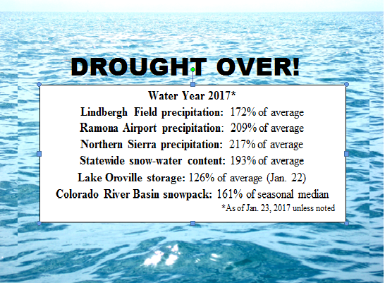 IT’S OFFICIAL! DROUGHT IS OVER IN SAN DIEGO COUNTY, SAN DIEGO WATER AUTHORITY DECLARES