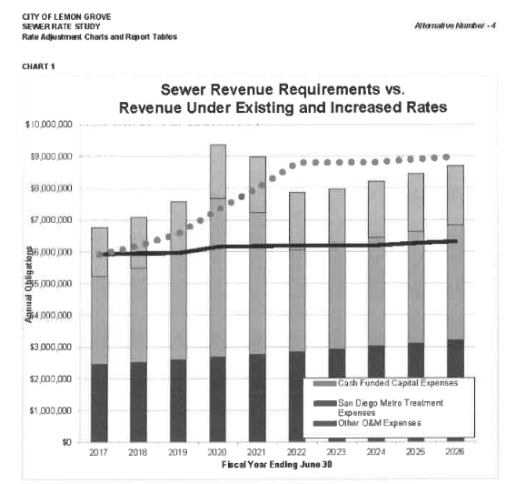 Onboard with enviro agreement to purify water By Thea Skinner February 16, 2017 (Lemon Grove) — The City of Lemon Grove unanimously voted on February 7th to take a wastewater rate increase and reserve allocation to public hearing. The move supports an agreement between the environmental community and City of San Diego’s Pure Water Project to filter sewer water into drinkable water. The relationship of the agreement in coming years is unforeseen. The 5-0 vote initiates proposition 218 notice of public hearing requirements. Property owners will receive a notice for public hearing for the 5.75 percent rate over the next 4 years to maintain a 40 percent reserve as a flat rate. “I am in agreement for a fact sheet (presented in public hearing) to outline the numbers,” said Mayor Racquel Vasquez. “My preference is to support a rate that is steady. Although we charged 3.75 percent in other years, I think the rate of 5.75 is appropriate.” Council heard a Lemon Grove Sanitation District wastewater rate case study during meeting discussions. Under council direction, staff is working with NBS Governmental Finance Group to manage the proposition 218 noticing requirements. “The contingency is $15,000 every year. Projecting revenue is insufficient, as $800,000 to $3.2 million is the expected shortfall projected over five years. If there is no rate increase, the reserve goes from $14 million to $5 million,” said Greg Henry of NBS. “Capital costs push over the line of current revenue.” Meanwhile, the Pure Water project carries a hefty financial responsibility. The 10-year capital improvement plan total for the project is estimated as $392,049,294, according to a City of San Diego Public Utilities Department Jan. 13 memo. Henry continued, “Three percent of assets is a standard inclusion rate stabilization and $3.7 million is for the Pure Water reserve. With a massive capital project, there is always risk of costs. It makes sense to have something in reserves in case something happens.” During three of the four years of the rate increase, the reserve will be slightly lower due to the Pure Water Project, he said. California codes require fees collected for connection to be in a separate reserve for specific purposes. Additionally, the proposition’s Right to Vote on Taxes Act stipulates sewer rates or funds must not operate with a profit and equal to cost of each parcel. Since different parcels exist, a different rate is set for each home. “If a sufficient number oppose, 3,409 protests would be required to not go forward with rate increase,” Henry said. Councilmember Jerry Jones weighed in stating, “The plan I see here takes enough of an amount into consideration, and is based on the capital cost that we see coming,” he said. “We have attached our wagon to San Diego. Point Loma is the last ocean discharger not on secondary treatment in the U.S. We have been dodging the three and a half million-dollar upgrade for a long time. Times are changing folks and we have environmental concerns.” Opting for another option, he added, “There is a lot of uncertainty… There are cities that are in the middle of reviewing their rates, so they will not be in financial trouble.” In appreciation for Councilmember Jones comments, Councilmember David Arambula echoed similar sentiment. “I am a firm believer in not raising costs,” he said. “The City of San Diego has awarded two design contracts for Pure Water, and as of now, this is the most accurate expenditures with a possibility of higher costs.” Mayor Pro Tem Jennifer Mendoza advocated for clear specifications of the rate increase and the background leading to the rate increase to be presented to the public. “We do not want 51 percent of people to oppose this,” she said. “Really, our hands are tied here…A constituent called me today and said do we have to do this? Yes, we do. We cannot go on as business as usual.” Per the agreement with San Diego and the environmental community there is recognition for, “The Congressional Act that created the Clean Water Act – a secondary equivalence and a permanent waiver for Point Loma in 2019. “We have asked San Diego if we do not secure secondary equivalence, will you continue with Pure Water, and they do not have an answer. There is going to be a change in this relationship in 2019.” The timeline is: Nov. 15, 2016 Wastewater rate study presentation March 4, 2017 Deadline to provide notices to district members April 18, 20017 Board meeting, public hearing to introduce ordinance April-May 2017 Board meeting for connection fee analysis study May 2, 2017 Board meeting second reading, adoption of ordinance July 1, 2017 New rates take effect