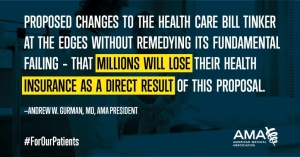 AMERICAN MEDICAL ASSOCIATION: MILLIONS WILL LOSE HEALTH INSURANCE IF CONGRESS PASSES REVISED HEALTH CARE BILL TOMORROW