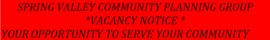 VACANY ON SPRING VALLEY COMMUNITY PLANNING GROUP