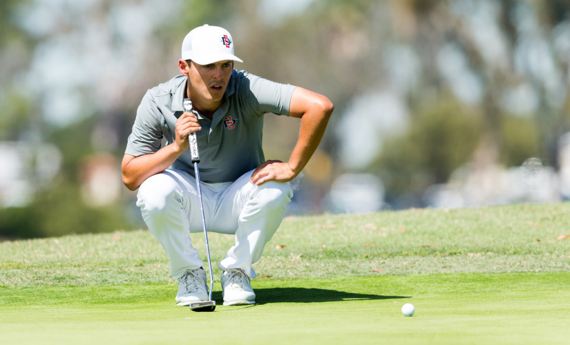Tournament to resume Monday; Aztecs tied for 12th Source: goaztecs.com Photo courtesy goaztecs.com September 10, 2017 (Independence, Minn.) – The San Diego State men’s golf team finds itself in a tie for 12th place at the Gopher Invitational after play was suspended on Sunday toward the end of round two due to darkness. Collectively, the Aztecs sit at 21-over par with four starters still on the course at the par-71, 7,388-yard Windsong Farm Golf Club when dusk fell. San Diego State finished the opening round in third place after posting a combined 3-over 287, but experienced a precipitous drop in the afternoon, falling into a tie for 12th with Iowa and Penn State. Play is scheduled to resume on Monday, starting at 8:30 a.m. CT/6:30 a.m. PT. Individually, Blake Abercrombie (Rocklin, Calif.) was the lone SDSU player to complete both rounds finishing the day in a tie for 40th at 5-over 147. The Aztec junior shot a 70 over the first 18 holes, offsetting two bogeys with a trio of birdies, including a successful drain on his back-nine at the par-4, 471-yard No. 1 green. However, Abercrombie was unable to sustain the momentum in the afternoon, stumbling 33 places on the leaderboard on the heels of a second-round 77. In addition, Trevor Norby (Carlsbad, Calif.) remains in an eight-way tie for 18th at 3-over with two holes remaining in the second round. The Aztec sophomore carded a 71 in the morning session, highlighted by four birdies, including an impressive conversion on the par-4, 469-yard No. 2, which ranked as the most difficult hole of round one. The San Marcos High alumnus added three more birdies in the second round, but six bogeys has prevented a loftier perch. Elsewhere PJ Samiere (Kailua, Hawaii) occupies the 46th position at 6-over with five holes remaining his second round. The SDSU senior got off to a wobbly start in the opening round, going bogey-double bogey on his first two greens, before regrouping with 11 pars and three birdies en route to a 74. Samiere notched back-to-back drains on No. 12 and 13 in the afternoon, easing the sting of a triple bogey on the par-5 No. 9. Puwit Anupansuebsai (Nakhon Phanom, Thailand) shot a 1-over 72 in his first collegiate round, sinking a trio of birdies to counter four bogeys. However, the Aztec freshman experienced difficulty in round two, slipping 32 places into a tie for 48th at 7-over with two holes to go. Anupansuebsai recorded birdies at the par-4 No. 8 and the par-5 12th, but six bogeys and a double have proven difficult to overcome. The SDSU rotation also features Eric Ghim (Glendale, Ariz.), who sits in a tie for 74th at 13-over with one hole remaining in the second round. The Aztec sophomore was unable to sustain any consistency in the morning, settling for a 78. Despite logging three birdies. Ghim was plagued by a rash of six bogeys and two doubles before suffering six additional blemishes in round two. Kent State’s Ian Holt was one of 32 golfers to complete both rounds on Sunday, grabbing the individual lead after posting a 5-under 137, while Pepperdine’s Sahith Theegala and Arizona State’s Alex Del Rey Gonzalez lurk just one shot behind in a tie for second at 4-under. Rounding out the top five are Arkansas’ Mason Overstreet (-3) and Virginia Tech’s Mark Lawrence (-1). In the team standings, Arkansas (+1) currently owns a three-stroke advantage over Baylor (+4), followed by Oklahoma (+8), Michigan State (+10) and Charlotte (+13). The Aztecs also have two golfers competing in the auxiliary Gopher Invitational individual tournament, being conducted at the par-72, 6,953-yard Pioneer Creek Golf Course in Maple Plain, Minn. Junior Otto Vanhatalo (Espoo, Finland) finds himself in a tie for 20th at 9-over 153 on rounds of 77-76, while senior Pablo Matesanz remains in 25th after carding a 12-over 156 (80-76). Gopher Invitational Round Two Results Suspended Due to Darkness Windsong Farm G.C. Par 71, 7,388 yards Team Standings (Top 5 of 16 teams + SDSU) 1. Arkansas (+1) through holes 14-18 2. Baylor (+4) through holes 16-17 3. Oklahoma (+8) through holes 16-17 4. Michigan State (+10) through holes 16-17 5. Charlotte (+13) through holes 13-18 — T12. San Diego State (+21) through holes 13-18 Individual Leaders (Top 7 of 87 players + SDSU) 1. Ian Holt, Kent State 70-67—137 (-5) T2. Sahith Theegala, Pepperdine 68-70—138 (-4) T2. Alex Del Rey Gonzalez, Arizona State 71-67—138 (-4) 4. Mason Overstreet, Arkansas 72-67—139 (-3) T5. Mark Lawrence, Virginia Tech 72-69—141 (-1) T5. Matthew Perrine, Baylor (-1) through hole 17 T5. Connor Purcell, Charlotte (-1) through hole 13 — T18. Trevor Norby, SDSU (+3) through hole 16 T40. Blake Abercrombie, SDSU 70-77—147 (+5) T46. PJ Samiere, SDSU (+6) through hole 13 T48. Puwit Anupansuebsai, SDSU (+7) through hole 16 T74. Eric Ghim, SDSU (+13) through hole 17 Gopher Invitational Individual Tournament Day One Results Pioneer Creek G.C. Maple Plain, Minn. Par 72, 6,953 yards SDSU Individual Scores Only T20. Otto Vanhatalo, SDSU 77-76—153 (+9) 25. Pablo Matesanz, SDSU 80-76—156 (+12)