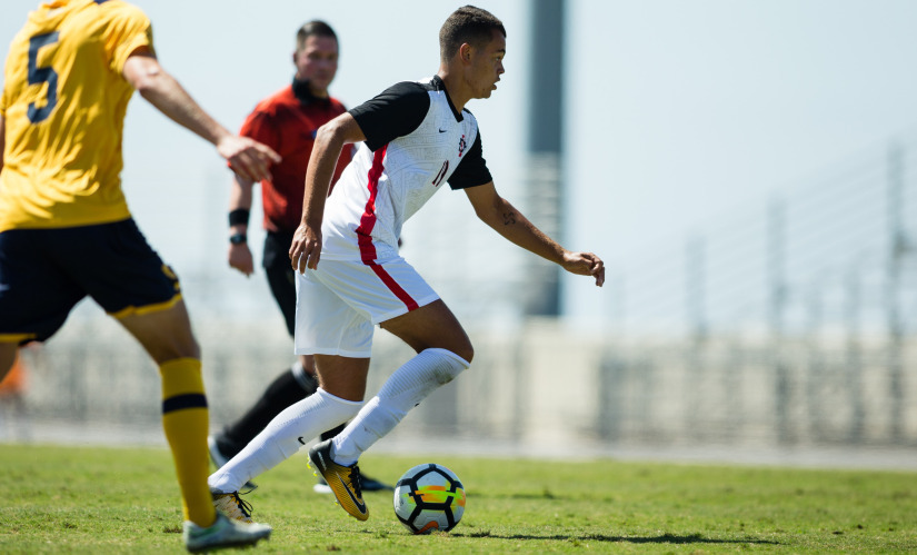 Source: goaztecs.com Photo courtesy goaztecs.com October 8, 2017 (Corvallis, Ore.) – The San Diego State men’s soccer team suffered a 2-0 setback against Oregon State at Lorenz Field on Sunday. The Aztecs fall to 4-8-0 (0-4-0 Pac-12) on the season, while the Beavers notch their first conference win of the season and improve to 4-7-0 (1-2-0 Pac-12). The Beavers headed into the halftime break with a 1-0 lead in thanks to a 29th minute tally by Don Tchilao. 13:58 after play resumed for the second half, OSU extended that lead with Jordan Jones’ third goal of the year. AJ Vergara led the Aztecs in both shots, with four, and shots on goal, with two. One of the Aztecs best scoring chances came in the 84th minute, as Tevenn Roux’s chance at goal ricocheted off the post and out of danger. Less than three minutes later, the Aztecs presented another strong offensive threat as Dallin Cutler’s shot was on target, but cleared out of harm’s way by an OSU defender. SDSU posted a 16-12 shot advantage and showed a high sense of urgency in the game’s final nine minutes, taking six shots for a chance at a late comeback. Each team recorded five shots on goal, while Adam Allmaras recorded three saves in net for the Aztecs. SDSU has a weeklong break from game competition and will travel to UCLA (4-5-0, 1-2-0 Pac-12) next Sunday, Oct. 15, for a 5:00 p.m. contest at Drake Stadium in Los Angeles. Box