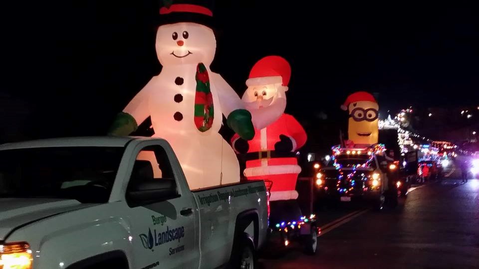 By Jo Moreland, Alpine-Mountain Empire Chamber of Commerce December 7, 2017 (Alpine) — “Merry Christmas!” That cheerful message was shouted often during the “22nd Annual Alpine Village Christmas Parade of Lights & Snow Festival” on Dec. 1 in Alpine. Presented each year by the Alpine Mountain Empire Chamber of Commerce, many spectators and participants declared that the combined nighttime event was bigger and better than ever. At the free Snow Festival in nearby Alpine Creek Town Center at 1347 Tavern Road, free snow sledding, more than 35 vendors — each with a different booth, entertainment and children’s activities kept crowds busy. One of the few night Christmas parades left in San Diego County, the foothills holiday celebration draws families and others from throughout the region. The Alpine Creek Town Center, Brixton Capital, Viejas Enterprises, San Diego Gas & Electric, United Rentals, EDCO Disposal Services, Bullseye Feed, Village Carpets/Flooring America, East County Transitional Living Center and RTL Traffic Control & Equipment Rental sponsored the family fun.