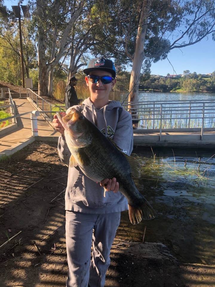 Printer-friendly version East County News Service March 19, 2019 (Lakeside) – Steven Scouten sent in this photo of his son, Justin, with a large-mouth bass caught at Lake Jennings in Lakeside this past week. “It’s 10 pounds—his personal best,” Scouten says. You can find more information about fishing, including special fishing events, at Lake Jennings by visiting http://www.lakejennings.org/. The largest large-mouth bass ever caught worldwide weighed in at 22 pounds 4 ounces in Montgomery Lake, George in 1932 – a record that took over seven decades to tie, but which has never been surpassed, according toGame & Fish Magazine. Printer-friendly version