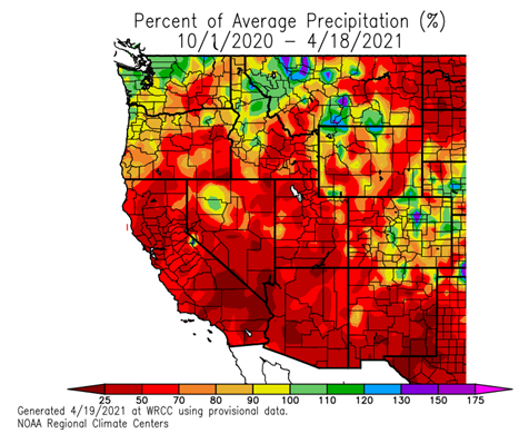 Printer-friendly version By Miriam Raftery Image, left: Dept. of Water Resources map shows precipitation is far below average statewide May 11, 2021 (Sacramento) – Following months of below normal rainfall