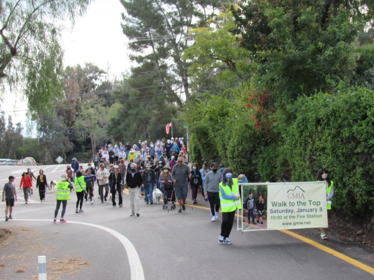 Printer-friendly version Story and photos by Karen Pearlman January 8, 2022 (Mount Helix) — More than 200 people circled the 3/4-mile winding road from the San Miguel Fire Station on Vivera Drive up