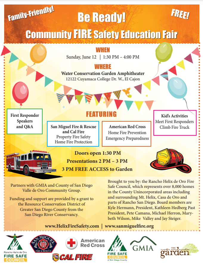 Printer-friendly versionSource: Rancho Helix de Oro Fire Safe Council June 3, 2022 (El Cajon) – The Rancho Helix de Oro Fire Safe Council is sponsoring a free family-friendly education fair
