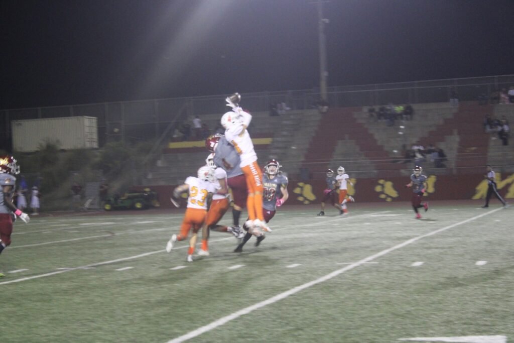 Printer-friendly versionStory and photos by Liz Alper October 19, 2023 (Spring Valley) – ECM Sports is back to work after a long break and we’re finally in Spring Valley for our first-ever Thursday night football game, as the Norsemen from Valhalla head to Monte Vista to face the Monarchs. Both teams are a little worse for wear; Valhalla is 2-7 overall and winless at 0-3 in Grossmont League play. Monte Vista is 2-6, 1-1 in league. We had barely started when the Monarchs strung together a long touchdown run by senior Jaidyn Ellison and Monte Vista led 6-0 after one. After senior quarterback Mayar Oqdeh flexed his arm and completed a long pass in the second, Ellison punched it in again for his second touchdown of the night. The Monarchs tallied one more time in the final seconds of the half and completed the two-point conversion to take a big 21-0 lead to the locker room at the half. Senior Adrian Gonzalez joined in on the running touchdowns with a fight through coverage in the third. The Norsemen finally started making some noise, though, with some nice moves from senior running back Dominic Silva and the Monarchs led 28-7 after three. The orange and white kept fighting in the fourth. Dom punched it in again for his second score despite a big hit, but Ellison tallied his hat trick touchdown to keep the Monarchs up by three scores. But Valhalla made it two again after a run after an epic long pass from quarterback Braxton Estes. But the Monarchs returned an onside kick to the house to go up by three again. The Norsemen recovered a fumble and Estes found senior wide receiver Angelo Rafo in the endzone on a slant to make it two again, but the Monarchs reigned and took this one with a 42-29 win. They’re now 3-6 overall and 2-1 in the Grossmont League. The Norsemen fall to 2-7 and remain winless in league play, falling to 0-4. UP NEXT Monte Vista ends the regular season with a clash against their crosstown rival Mount Miguel at 7 p.m. next Friday. Other East County scores: Christian 19, Mira Mesa 28 Patrick Henry 14, La Jolla 45 Santana 21, Grossmont 46 Del Norte 42, Ramona 28 Steele Canyon 49, West HIlls 7 Like our sports coverage? Donate to help support ECM’s sports section! Follow @ECMagSports on X for live sports coverage and stories! Does your child play a sport at a level other than varsity? Comment on this story or tweet @ECMagSports to request coverage! Printer-friendly version