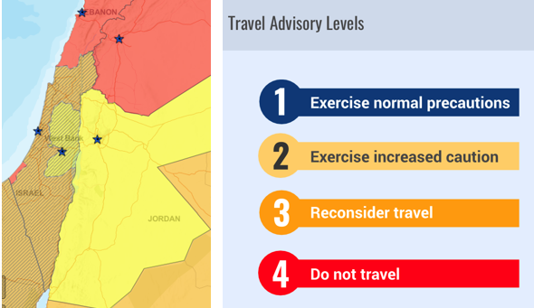 Printer-friendly versionEast County News Service October 19, 2023 (Washington D.C.) – Today, the US State Department issued a worldwide travel advisory. “Due to increased tensions in various locations around the world, the potential for terrorist attacks, demonstrations or violent actions against U.S. citizens and interests, the Department of State advises U.S. citizens overseas to exercise increased caution.” The State Department advises that U.S. citizens should stay alert in locations frequented by tourists; enroll in the Smart Traveler Enrollment Program (STEP)) to receive security updates and make it easier to locate you in an emergency; and follow the Department of State on Facebook and Twitter. There is also currently a do not travel advisory for Gaza and Lebanon, and a reconsider travel advisory for Israel and the West Bank. The U.S. government has authorized the departure of family members of U.S. government personnel and some non-emergency personnel on a case-by-case basis from Mission Israel and Lebanon. It advises US citizens, who wish to leave Israel to go to Ben Gurion International Airport terminal three, where are US Embassy personnel can direct them to US chartered flights, through at least Sunday, October 22. U.S. citizens who wish to depart with U.S. government assistance must express their interest via the crisis intake form. U.S. citizens have successfully departed the West Bank and Israel into Jordan via the border crossings, including Sheikh Hussein and Allenby Bridge, and the State Department encourages U.S. citizens to take advantage of those options if possible and safe to do so. The State Department said it is working on potential options for departure from Gaza for U.S. citizens, and recommended “if you have not already done so, please complete the crisis intake form to provide contact information should we need to reach out to you on short notice.” It characterized the situation at the Rafah crossing as fluid and unpredictable, and states “If you assess it to be safe, you may wish to move closer to the Rafah border crossing – there may be very little notice if the crossing opens, and it may only open for a limited time.” Printer-friendly version
