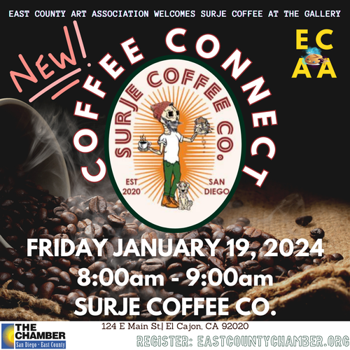 Printer-friendly versionBy Jonathan Goetz January 9, 2024 (El Cajon) — The San Diego Regional East County Chamber of Commerce is hosting two events at Surje Coffee Co., which is located