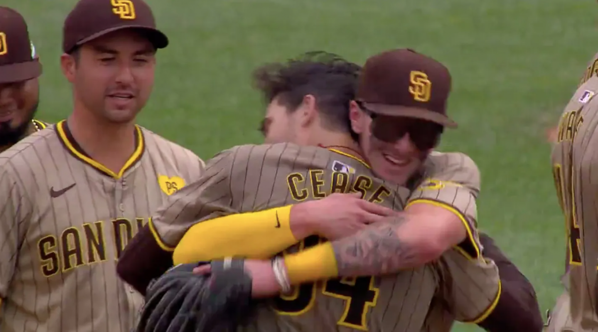 Printer-friendly versionBy Chris Jennewein, as seen in Times of San Diego, a member of the San Diego Online News Association Photo: Dylan Cease hugs Jackson Merrill, who made the