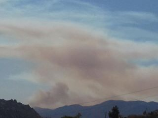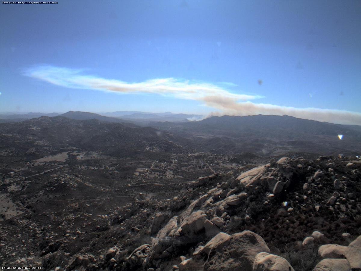 November 2, 2011 (San Diego’s East County) — A large fire in Mexico now poses a potential threat to the U.S., Cal-Fire radio indicates. The fire, which is around 600 acres, is putting up a large plume of smoke visible across most of southeast San Diego County. The fire is burning about one mile south of the border.