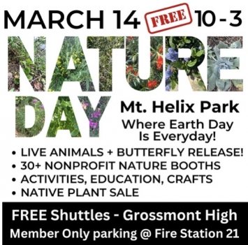 East County News Service March 6, 2026 (Mt. Helix) – You’re invited to celebrate Nature Day at the Mt. Helix Park, where Earth Day is…