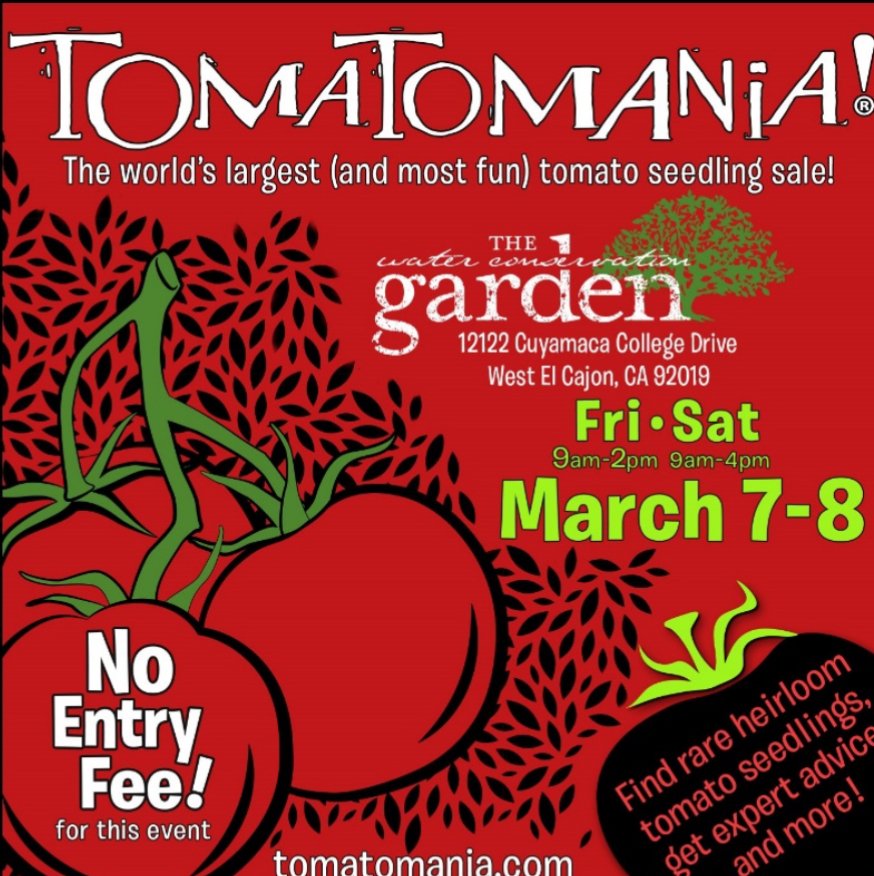 Printer-friendly versionBy Miriam Raftery February 27, 2025 (Rancho San Diego) – Tomatomania returns to the Water Conservation Garden at Cuyamaca College on Friday and Saturday, March 7-8. The free, two-day event celebrates 75-80 incredible varieties of your favorite summer treat—tomatoes. You can purchase tomato plants including some rare varieties, cherished heirlooms and legendary classics—plus get tips from experts on how to grow the most flavorful
