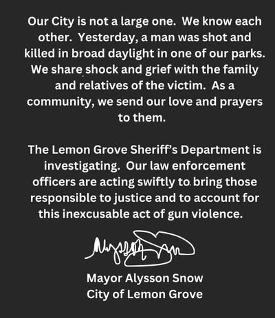 HOMICIDE AT PARK IN LEMON GROVE