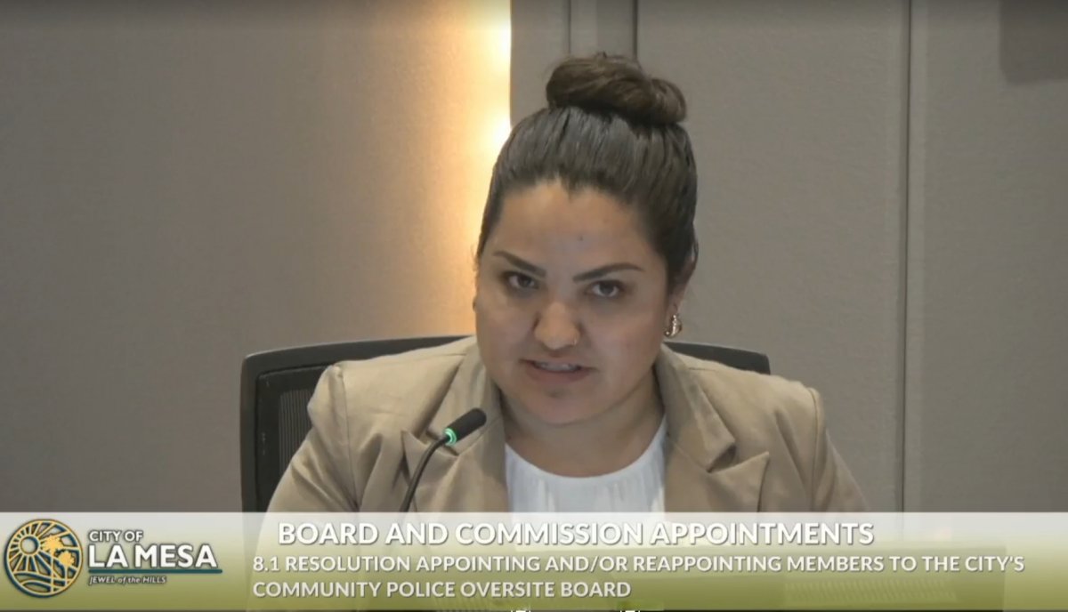 Printer-friendly versionBy Michael Howard Photo: La Mesa City Councilmember Lauren Cazares speaking at the January 28, 2025 city council meeting. Courtesy of City of La Mesa February 21, 2025 (La Mesa) – Citizens of La Mesa are speaking out about the appointment of retired Battalion Chief Dave Hardenburger to the Community Police Oversight Board (CPOB) last week when, without the proper
