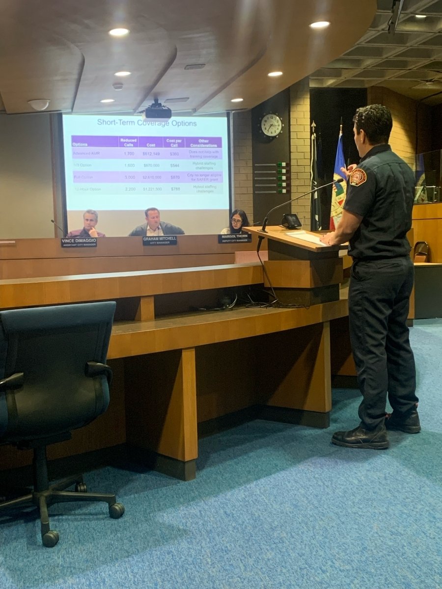 Printer-friendly version By G. A. McNeeley February 15, 2025 (El Cajon) – The El Cajon City Council, city staff, Heartland Fire Department and labor representatives came together on Wednesday to discuss possible short-term options, to staff a newly purchased fire engine, after a grant failed to fund. Last year, the City Council explored options to augment fire and medical