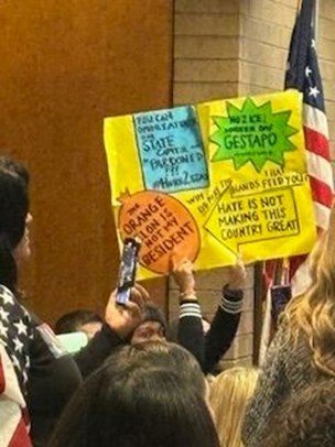 Printer-friendly version Issue prompts drive to recall Councilman Phil Ortiz By Alex Schorr and Miriam Raftery View video Photo, left: Resolution opponents hold up sign denouncing hate and likening ICE roundups to “Gestapo” tactics February 14, 2025 (El Cajon) – El Cajon’s City Council on Tuesday passed a controversial resolution allowing the city’s police to cooperate with federal immigration authorities