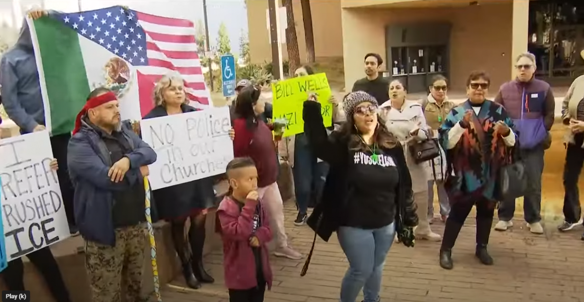 Printer-friendly versionBy Miriam Raftery Photo: Opponents of resolution rallied Monday in El Cajon; CBS 8 video screenshot Read the revised resolution on pages 57-59 from City Council agenda attachments January 28, 2025 (El Cajon) – A crowd of about 75people opposed to mass deportations held a rally outside El Cajon’s City Hall yesterday to speak out against Mayor Bill Wells’