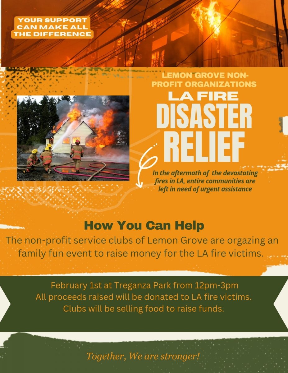 LEMON GROVE NON-PROFIT ORGANIZATIONS HOST FUNDRAISER FOR LA FIRE DISASTER RELIEF