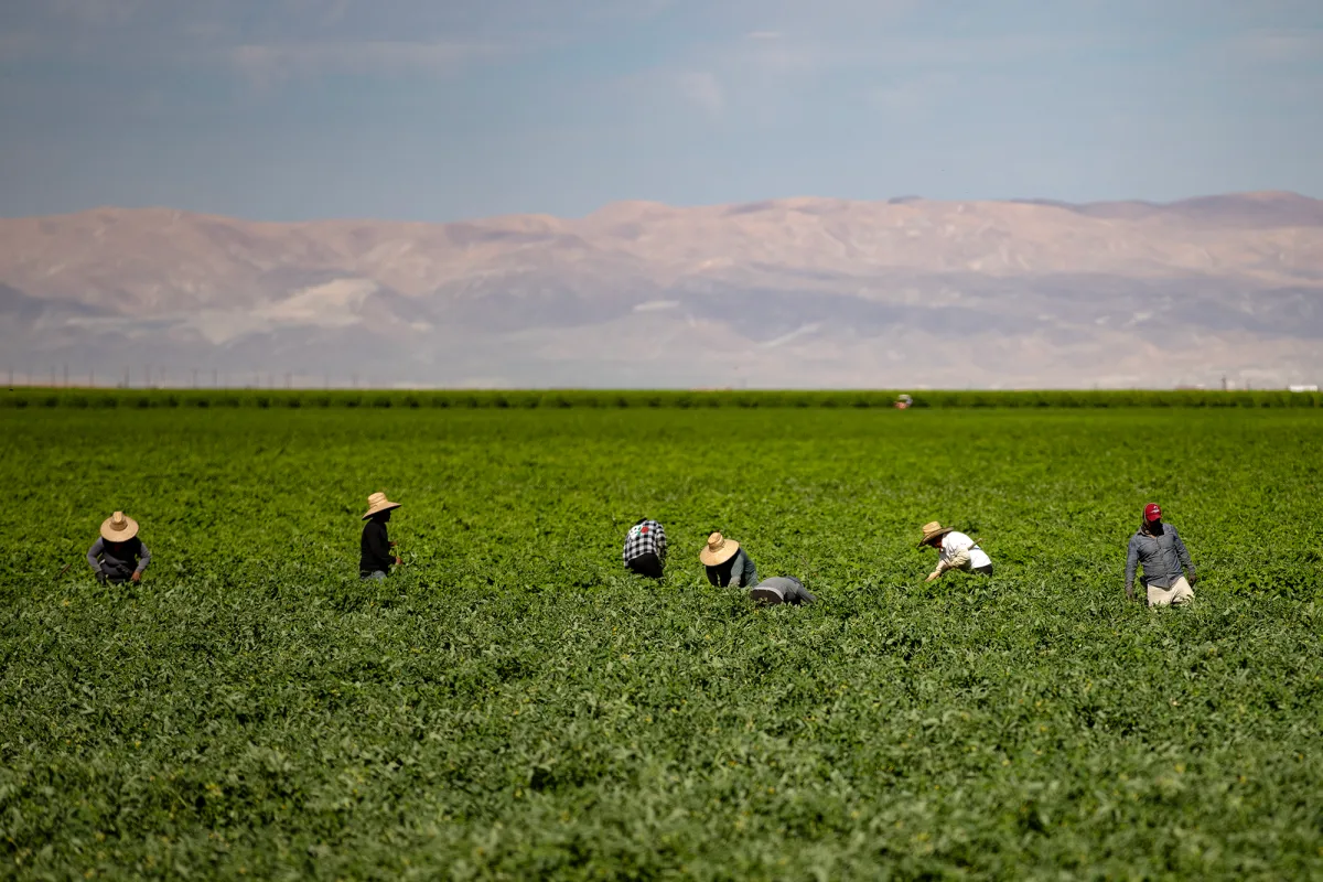 Printer-friendly versionBy Sergio Olmos, CalMatters CalMatters is a public interest journalism venture committed to explaining how California’s state Capitol works and why it matters Photo: Farmworkers work on a field outside of Bakersfield in Kern County on July 25 2023. Photo by Larry Valenzuela, CalMatters/CatchLight Local January 22, 2025 (Kern County, Calif.) – Acres of orange fields sat unpicked in Kern