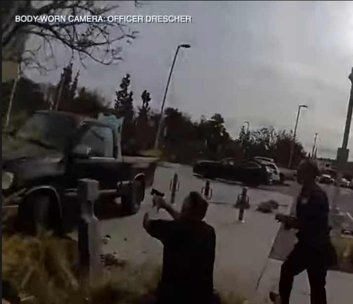 Printer-friendly version Suicidal suspect had doused self in gasoline before intentionally ramming officer, ECPD reports By Miriam Raftery Photo, left: Two officers train guns on driver after Sergeant Maxwell was struck. January 11, 2025 (El Cajon) – El Cajon Police Department has released surveillance and body cam video from the officer-involved shooting outside ECPD headquarters on December 11 during preparations