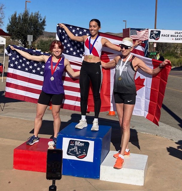 Printer-friendly versionBy Mike Allen Photo: Winners of 10K race: 1) Celina Lepe-Corvera 2) Mina Shull 3) Johanna Flipsen. All photos by Mike Allen January 13, 2025 (Santee) — Under sun drenched skies, some of the best race walkers in the world shattered several records as they traversed the Santee Trolley Square course on Jan. 12. The USA Track & Field National