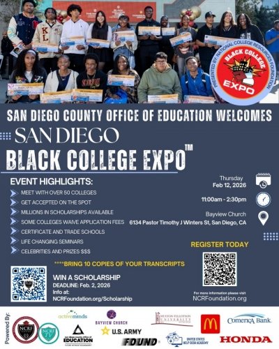 Printer-friendly versionEast County News Service February 9, 2026 (San Diego) – More than 2,500 students are expected to attend the 9th annual Black College Expo on February 12. The expo is organized by the San Diego County Office of Education (SDCOE) and National College Resources Foundation (NCRF). The Black College Expo is a free opportunity for local high school juniors and seniors to meet with