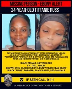 Update February 2, 2026: Tiffanie Russ has been located. She is safe and back with her family, per La Mesa Police. East County News Service…