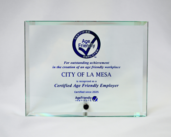 Printer-friendly version East County News Service July 13, 2025 (La Mesa) — The City of La Mesa has been designated as a Certified Age-Friendly Employer (CAFE) by the Age-Friendly Institute, becoming the first municipal government in San Diego County to receive the CAFE seal. This recognition highlights the City’s commitment to inclusive hiring practices and support for a multigenerational workforce.