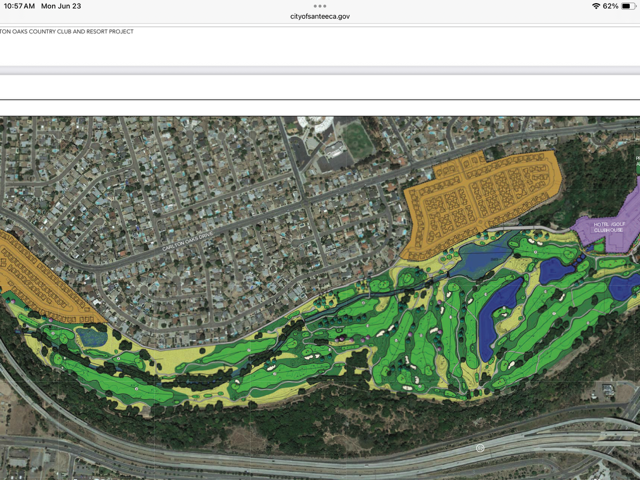 Printer-friendly version By Mike Allen June 23, 2025 (Santee) — While golfing and expansive courses are diminishing nationally, the owner of Santee’s only golf course is pushing a plan that would convert the current 1950s facility to a modern country club resort including 242 new houses, a 42-room hotel, a redesigned course, and other amenities. The project that