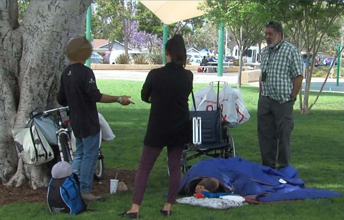 Printer-friendly versionBy Miriam Raftery File photo: Homeless outreach workers offer help to an unsheltered person in an El Cajon park June 19, 2025 (El Cajon) – The Regional Task Force on Homelessness has acknowledged that its 2025 Point in Time Count overstated the number of homeless people in the city of El Cajon. The report included 24 homeless individuals who