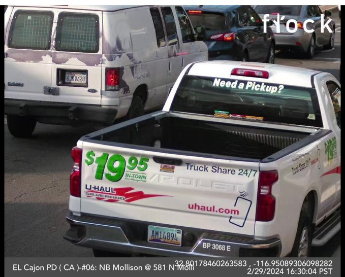 He is described as light-skinned, wearing all black clothing. He fled the scene in a white U-haul pickup truck with Arizona license plate AM 14894, last seen heading north on N. Mollison. If you see him or have any information, please call El Cajonj Police at 619 579-3311 or call 911.