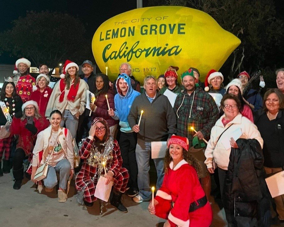 Photo, right: Lemon Grove residents celebrate the holidays by caroling on Broadway. Photo by Revitalize Broadway.