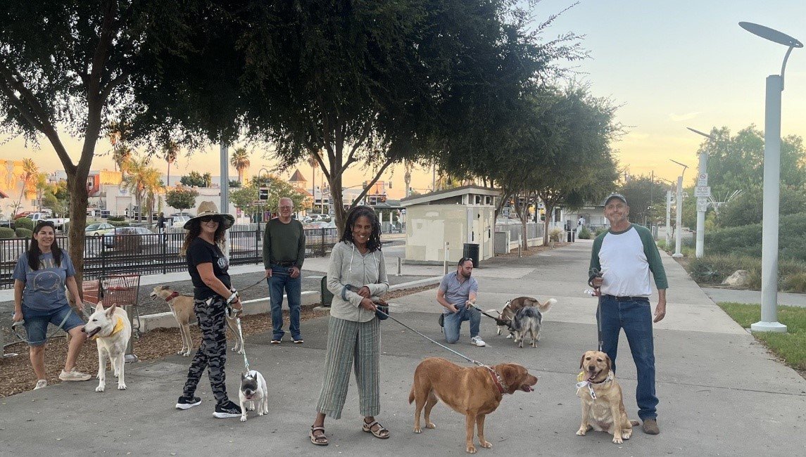 Photo, left: residents of Lemon Grove gather to walk their pups along Broadway. Photo by Revitalize Broadway.